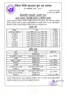 গ্রীষ্মকালীন ক্লাস পরিচালনার সময়সূচি