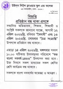 প্রতিষ্ঠান বন্ধ থাকা ও বাংলা নববর্ষ উদযাপন সংক্রান্ত নোটিশ